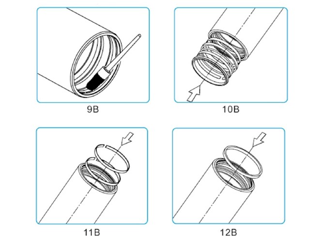 裝好一個缸筒后,將缸筒繼續向前推并將卡簧裝入上一節缸筒內壁上對應的卡簧